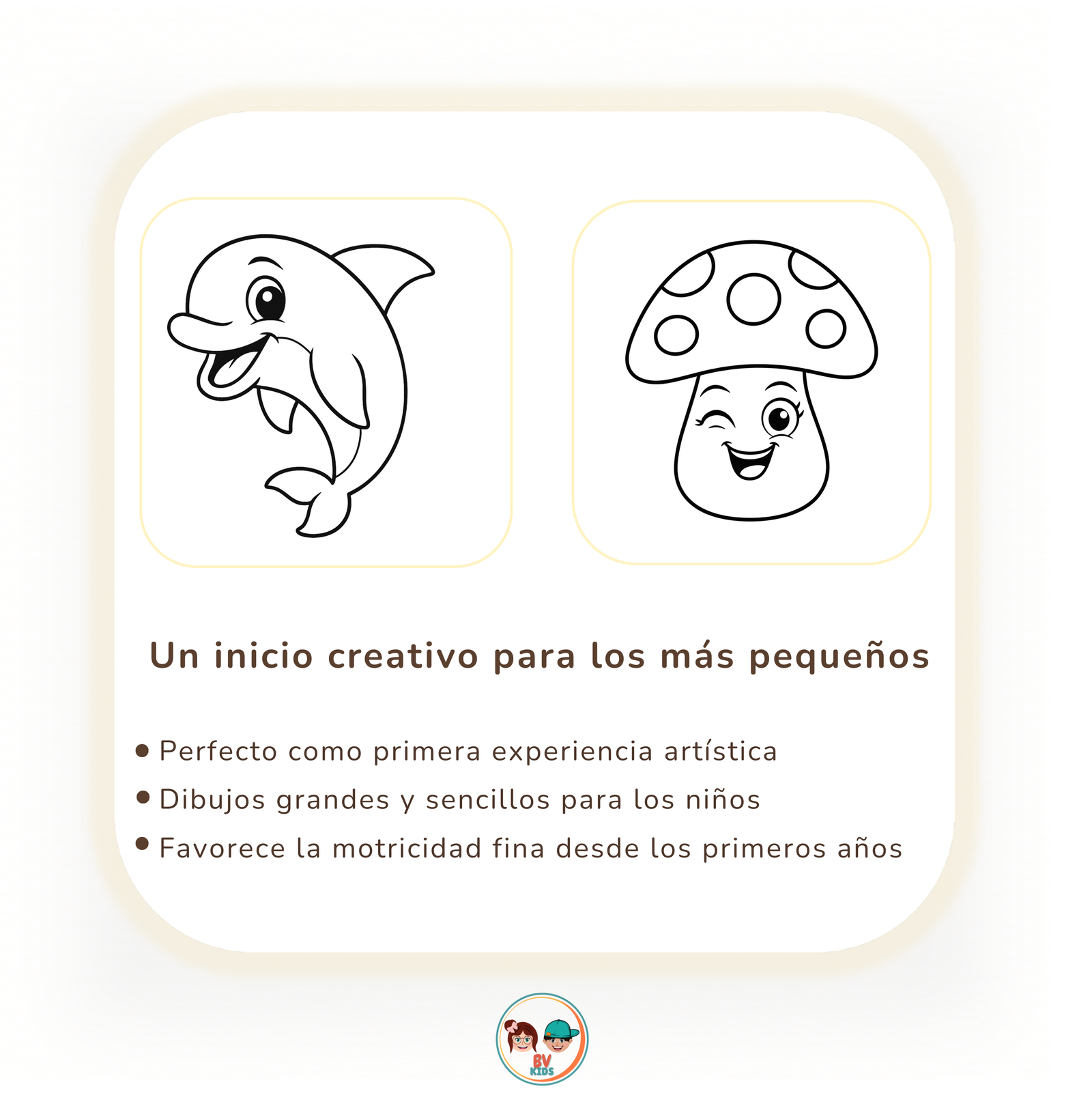 Este libro para colorear está pensado para niños de 1 a 3 años y ofrece ilustraciones grandes, líneas gruesas y contornos cerrados para que puedan colorear sin frustrarse. Es ideal como primer acercamiento al lápiz y para desarrollar la motricidad fina de forma natural.